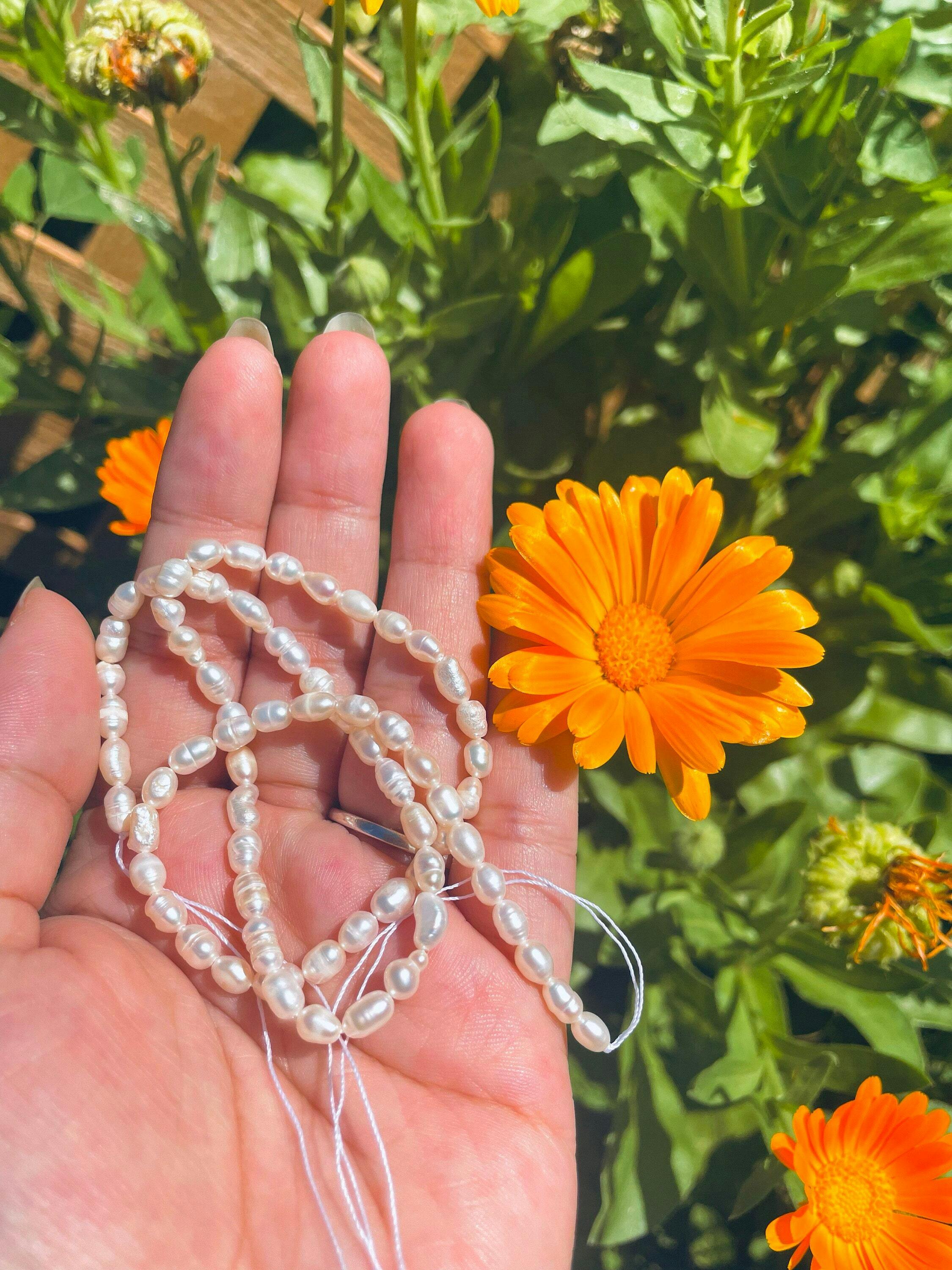 Fresh Water Pearl Beads-White, Approx. 4x5mm Rice Beads, 15 Inch