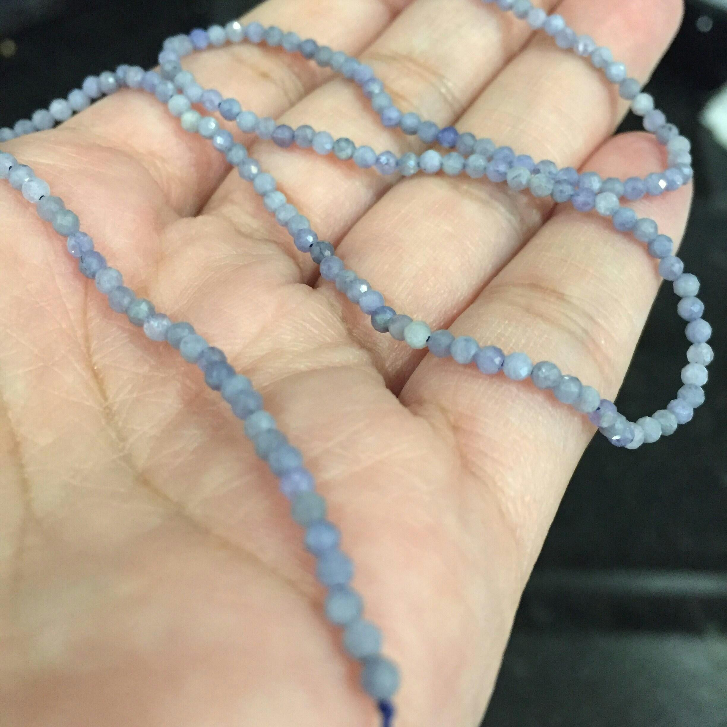 Name: TanzaniteShape: Micro Faceted RoundSize: Approx. 2.4mm, 15 Inch, Full strand, Approx. 165 beads, Hole 0.5mmColor: Blue, GrayQuality: ABSize and Color may vary slightly